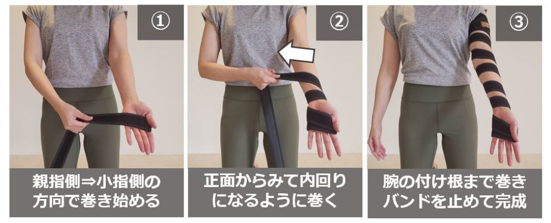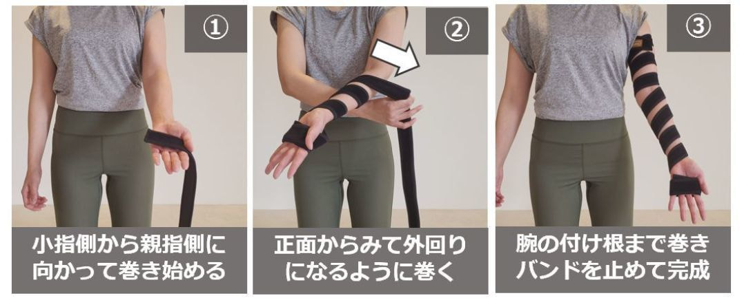 ・巻く時の圧は、皮膚に「軽い」圧迫を感じる程度が推奨となります。
