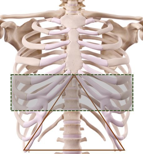 横隔膜をしっかりと収縮・弛緩させるには、下部肋骨を閉めたまま、動きを止めておくことが一つのポイントとなります。下部肋骨が開いてしまうと、横隔膜が横に引っ張られ、呼吸に伴う上下の動きが出にくくなるからです。