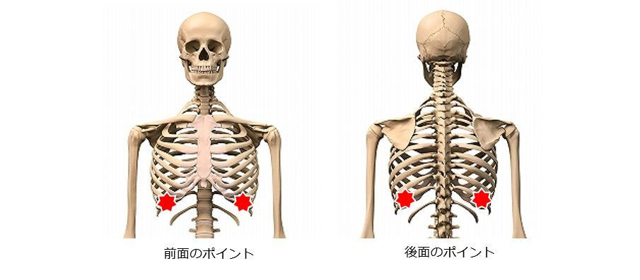 そのため感覚としては「肋骨を閉める時は4ポイントを均等に閉める」「肋骨を開く時は4ポイントを均等に開く」ぐらいの感じで覚えておいてもらえれば大丈夫です。